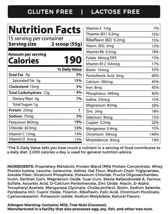 Metabolic Shake Macronutrients