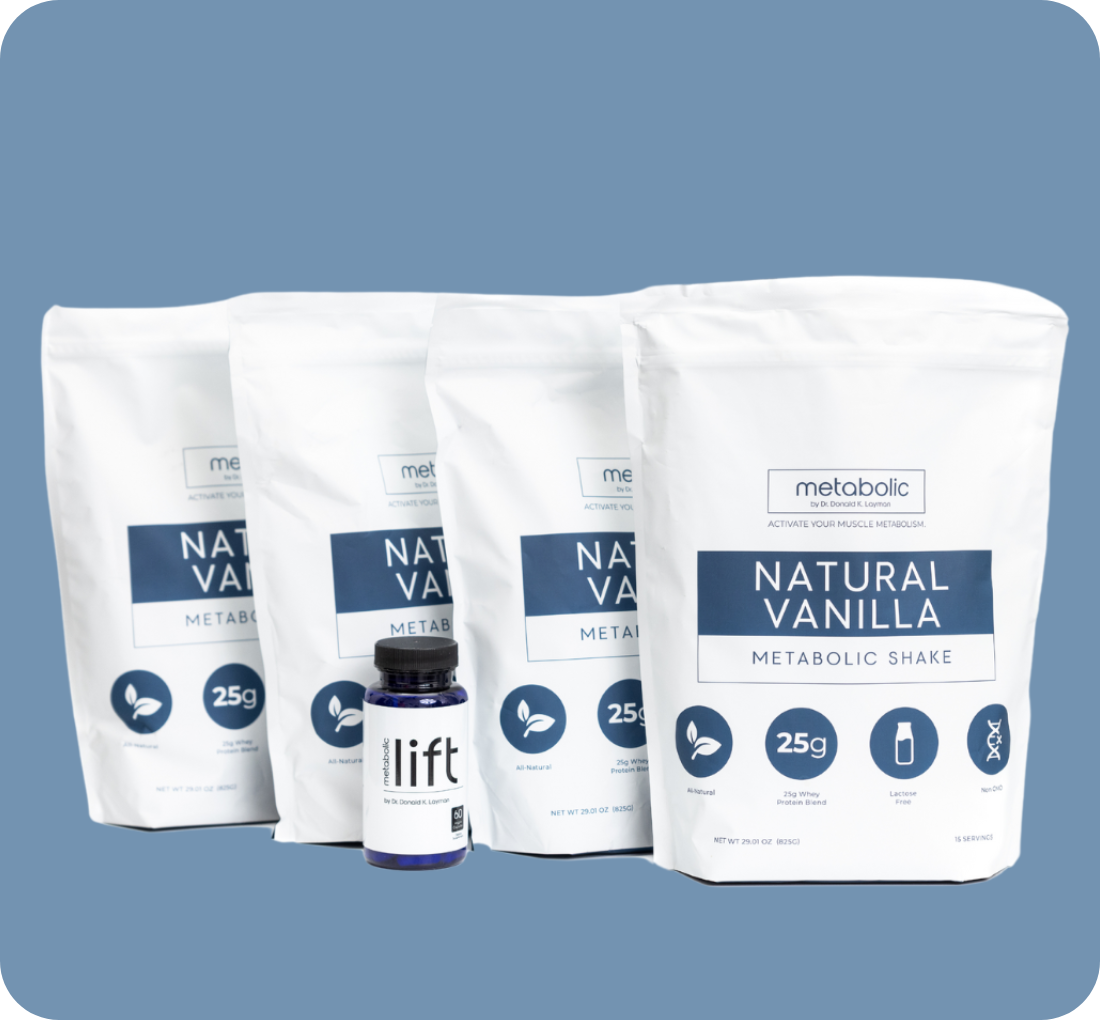 If your goal is to shed over 30 pounds while building lean muscle, this pack is for you. With the 60 Meal Replacement Bundle you will replace breakfast AND lunch with a METABOLIC meal replacement shake every day for 30 days, taking 1-2 Lift capsules half an hour before each for added METABOLIC boost. The digital guide that comes with each purchase will lead you through making healthy METABOLIC meals for dinner, and with this system, you will watch the pounds melt away.
